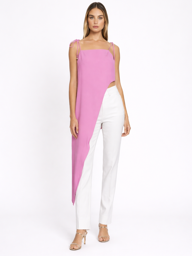 Transforme seu look com esta túnica branca feminina de corte assimétrico, uma peça que une design contemporâneo e versatilidade fashion. Com alças finas e caimento fluido, ela cria uma silhueta marcante e moderna, ideal para composições ousadas com jeans ou alfaiataria. O detalhe lateral alongado adiciona movimento e sofisticação, enquanto o contraste com peças casuais — como o jeans — revela uma proposta de estilo urbano e autêntico.