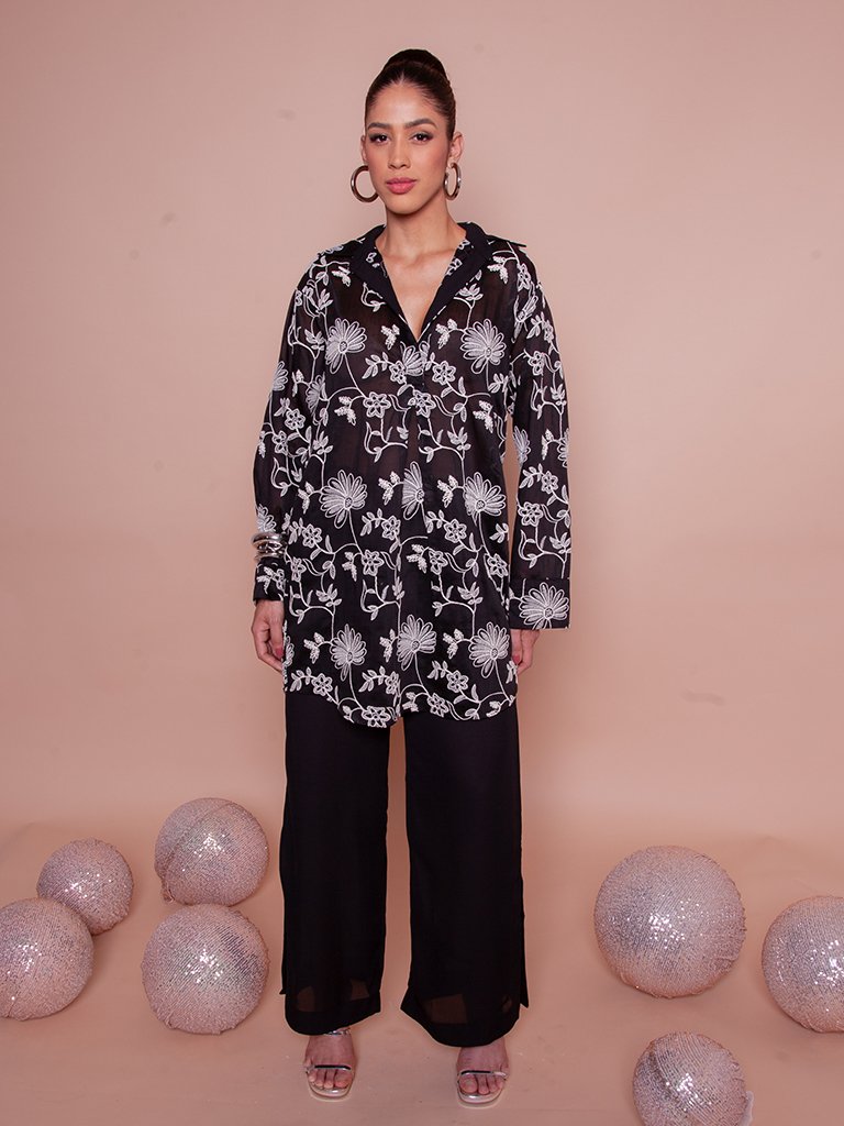Camisa Oversized Liocel Bordada - Preto - Alto Verão 2026 capsula 12