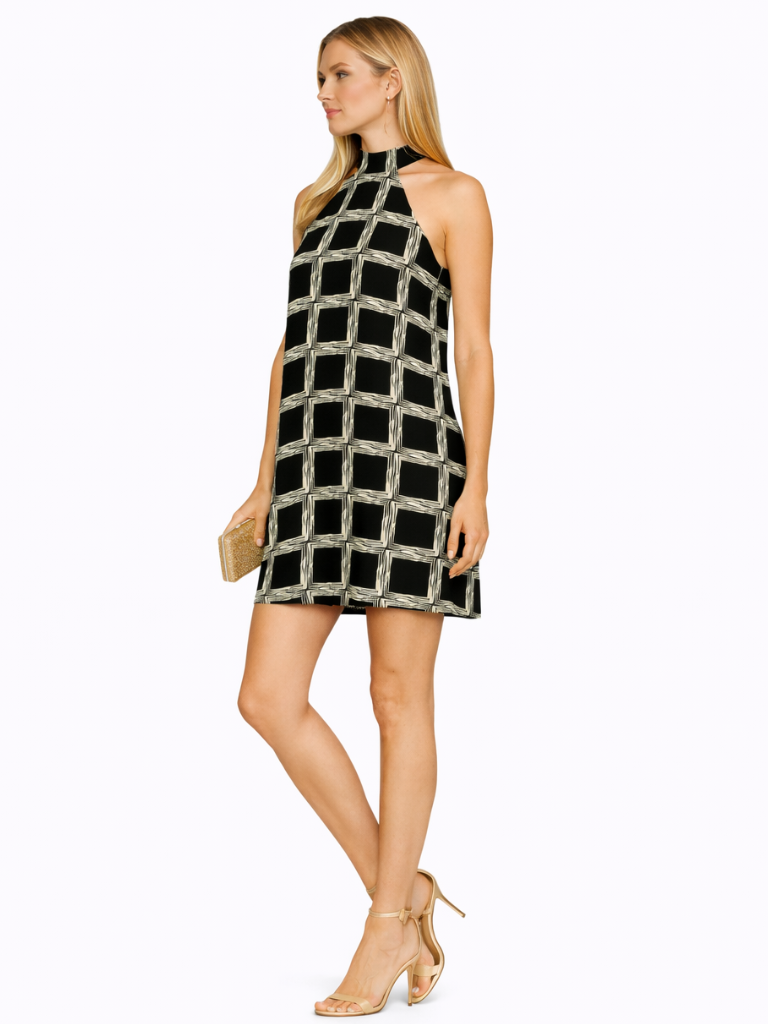 🖤 Vestido Curto com Faixa – Estampa Xadrez Preto e Branco | Look Urbano e Sofisticado