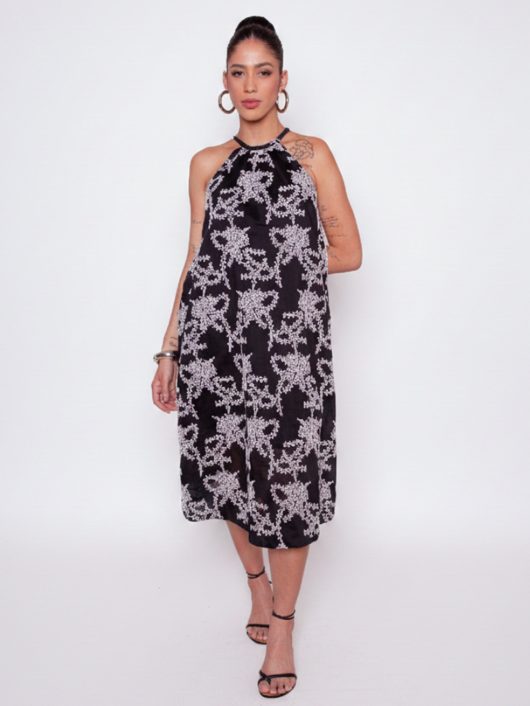 Vestido Longo Com Faixa Liocel Bordado All´s