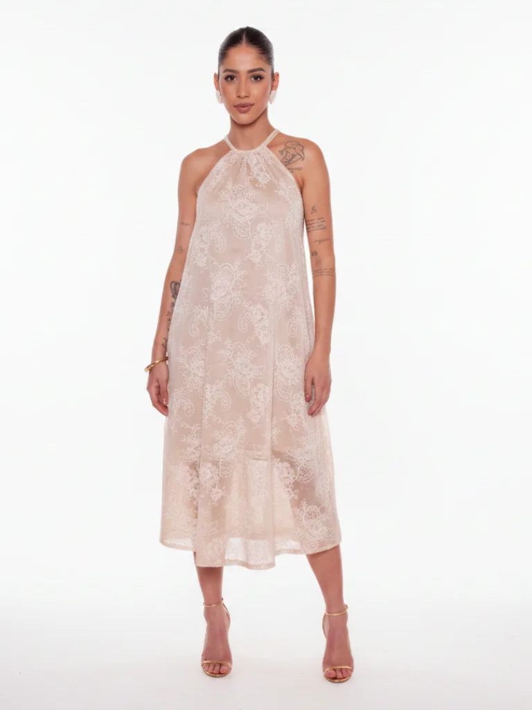 Vestido Longo Com Faixa Liocel Bordado All´s