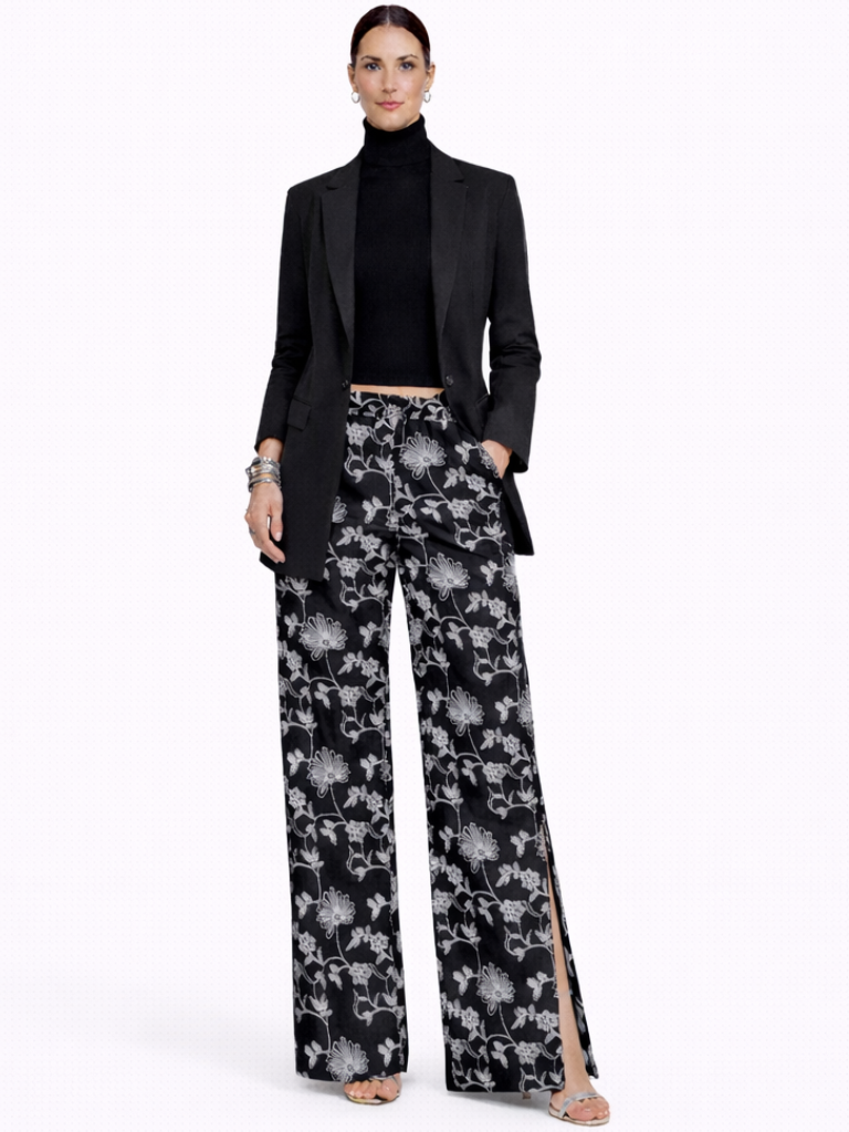 Calça Reta Liocel Bordado - Preto - Alto Verão 2026 capsula 12