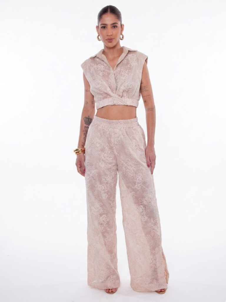 Calça Reta Liocel Bordado - Preto - Alto Verão 2026 capsula 12