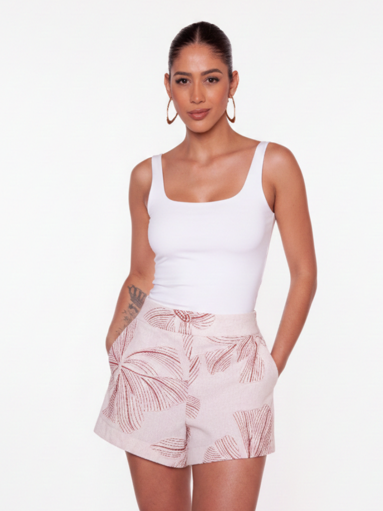 Shorts Alfaiataria Basico Linho Bordado - Preto - Alto Verão 2026