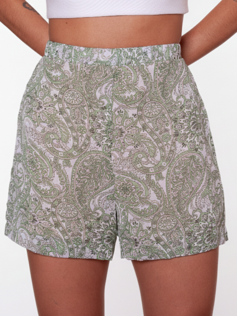 Shorts Cos Elastico Chiffon Estampado - Marrom - Alto Verão 2026 capsula 12
