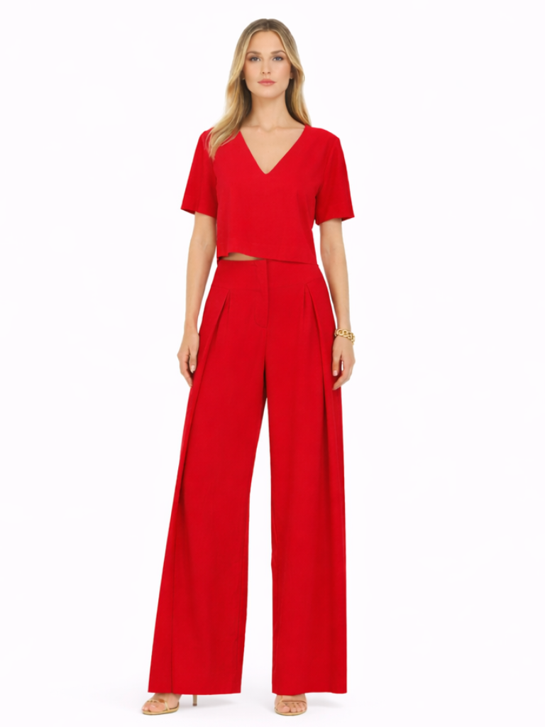 - Modelagem: Cintura alta com pernas amplas