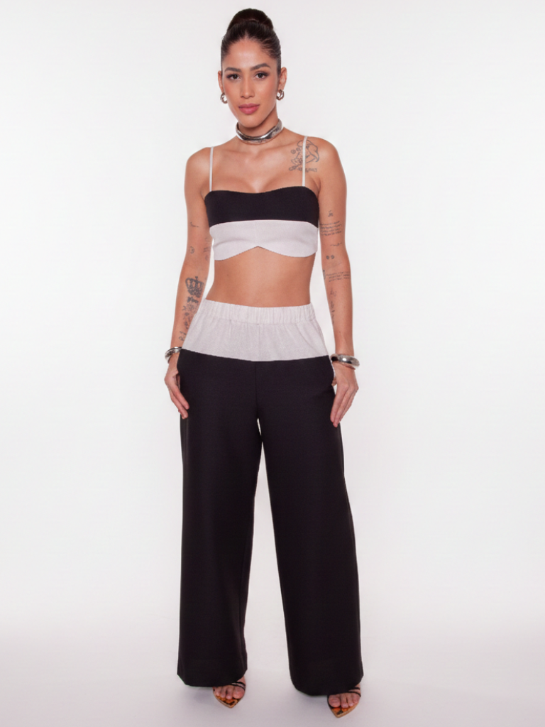 Calca Cos Elastico Bicolor Linho