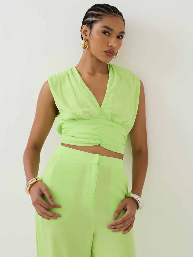 Se você procura uma peça diferenciada e cheia de personalidade, a Blusa Cropped Decote V Pala Franzida é a aposta certeira.