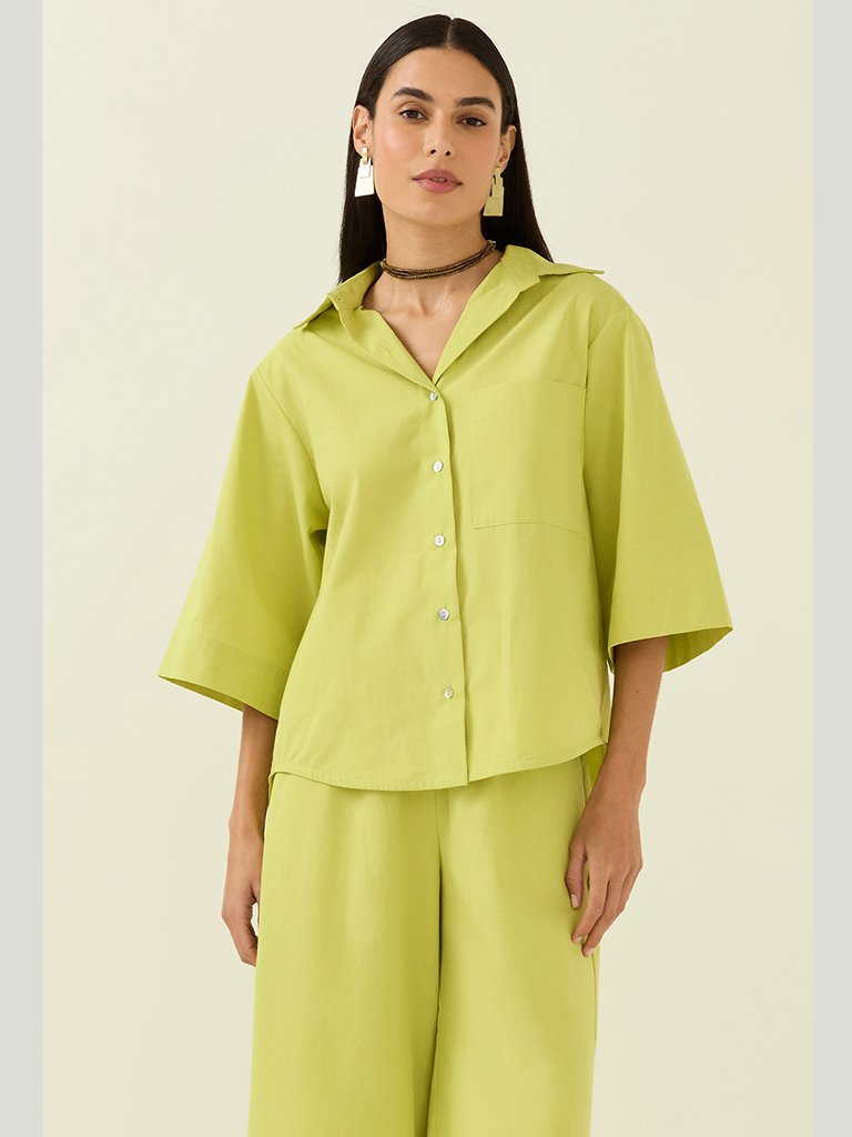 CAMISA MANGA CURTA BARRA FRALDADA ALGODÃO
