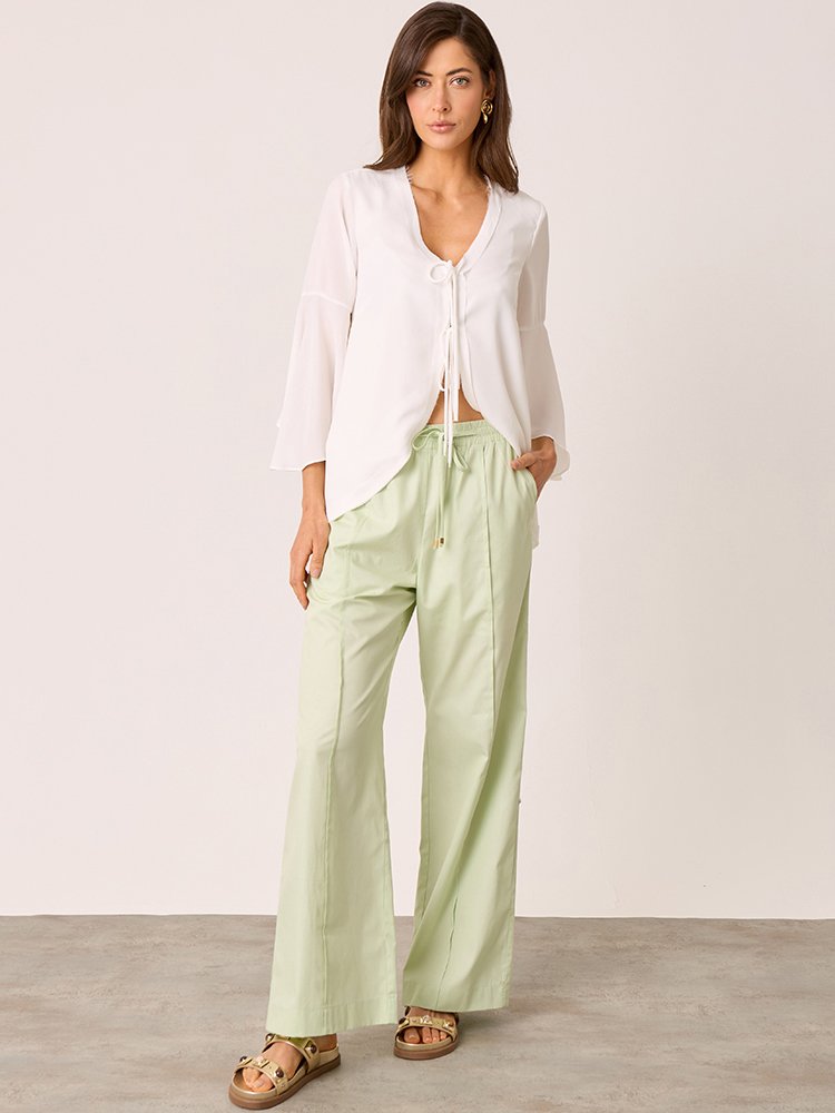 A calça feminina da coleção é pensada para oferecer liberdade de movimento, elegância e praticidade no ambiente de trabalho. Com cintura alta e corte reto, ela valoriza a silhueta e garante conforto durante todo o dia.