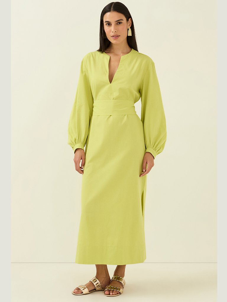 Descubra o charme do vestido longo evasê verde com manga bufante, perfeito para quem busca elegância e conforto. Com decote em V que valoriza o colo e mangas longas levemente franzidas, este modelo oferece um caimento fluido que alonga a silhueta. Ideal para eventos sociais, festas ou ocasiões especiais, o vestido é confeccionado em tecido leve, proporcionando frescor e sofisticação. Aposte neste visual versátil e destaque-se com estilo.