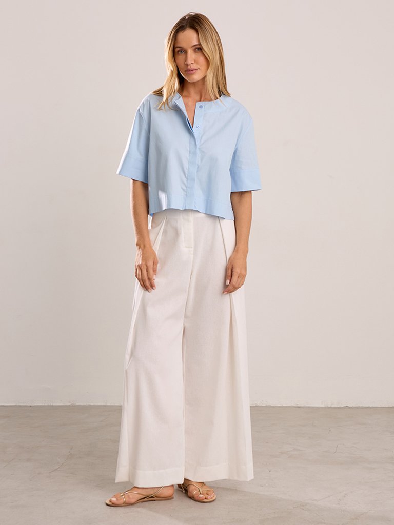 A camisa de tricoline branca da coleção é a peça-chave para quem busca sofisticação com conforto. Confeccionada em tecido tricoline de alta qualidade, ela oferece toque macio, excelente caimento e durabilidade. Ideal para compor looks formais ou casuais, essa camisa é indispensável no guarda-roupa feminino.