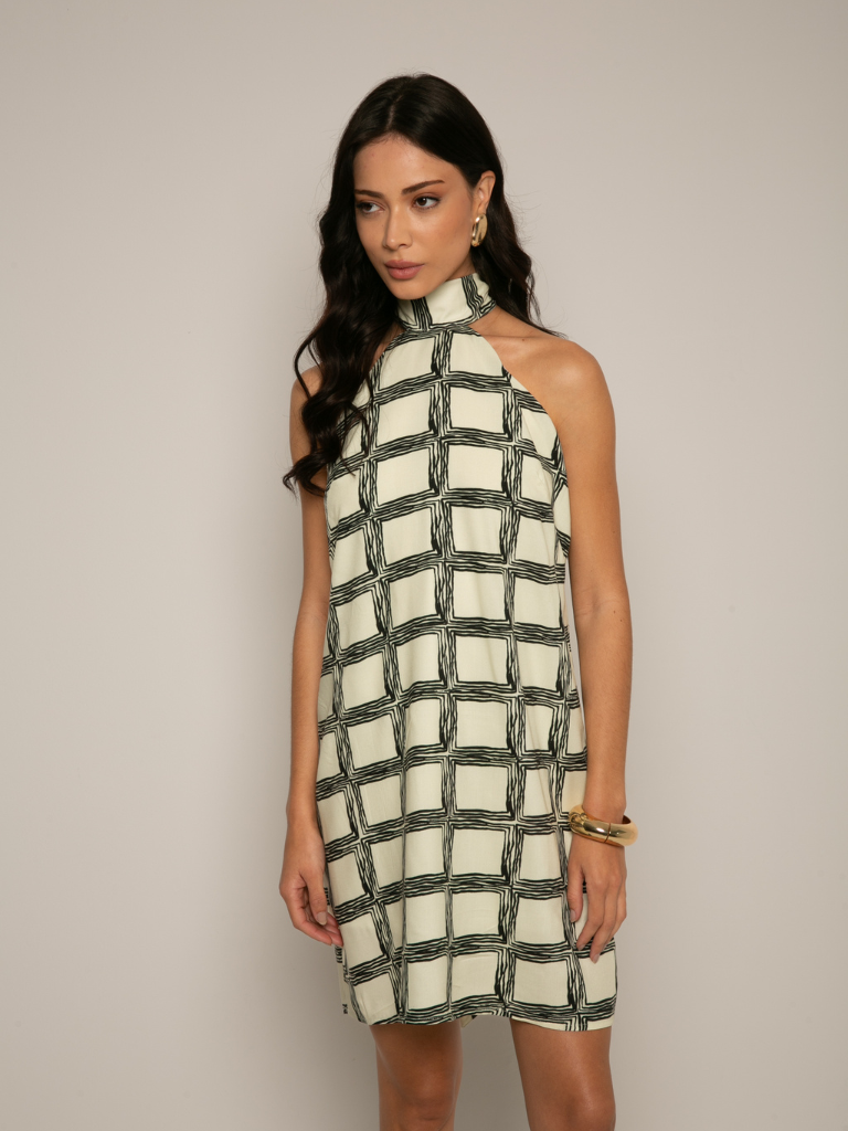 🖤 Vestido Curto com Faixa – Estampa Xadrez Preto e Branco | Look Urbano e Sofisticado