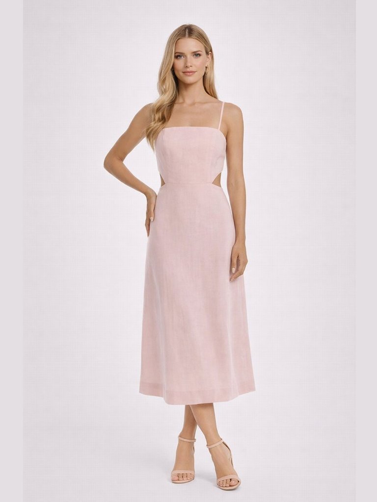 Vestido Midi Cut Out Fivela Costas Linho - 85% Viscose 15% Linho - Midi